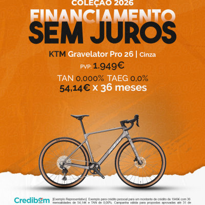 [Exemplo Representativo] Exemplo para crédito pessoal para um montante de crédito de 1.949,00 € com 36 mensalidades de 54,14 € e TAN de 0,00%. Campanha válida para propostas aprovadas até 31 de Dezembro de 2025, sujeitas a aprovação pelo Banco Credibom, S.A., entidade registada junto do BdP com o n.º 916. A AJSM Unipessoal Lda. é intermediária de crédito a título acessório, com o registo n.º 1657 no BdP e sem exclusividade ao Banco Credibom, S.A., podendo apresentar ou propor contratos de crédito a consumidores, prestar assistência a consumidores mediante a realização de atos preparatórios ou outros trabalhos de gestão pré-contratual relativamente a contratos de crédito que não tenham sido por si apresentados ou propostos. Apoio ao Cliente: 214 138 573 (chamada para a rede fixa nacional), 2ª a 6ª feira das 10h às 19h. AMBikes é uma marca que pertence ao intermediário de crédito AJSM Unipessoal Lda.