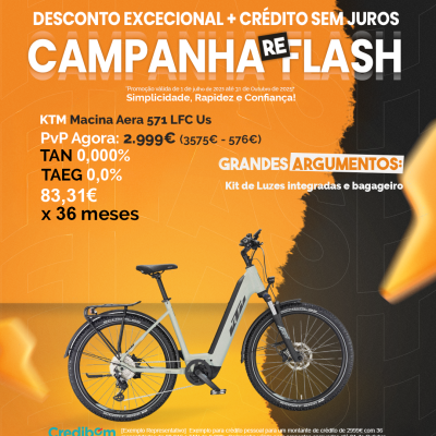 [Exemplo Representativo] Exemplo para crédito pessoal para um montante de crédito de 2999€ com 36 mensalidades de 83,31€ e TAN de 0,00%. Campanha válida para propostas aprovadas até 31 de outubro de 2025, sujeitas a aprovação pelo Banco Credibom, S.A entidade registada junto do BdP com o nº 916. A AJSM Unipessoal Lda. é intermediária de crédito a titulo acessório, com o registo nº 1657 no BdP e sem exclusividade ao Banco Credibom, S.A podendo apresentar ou propor, contratos de crédito a consumidores, prestar assistência a consumidores, mediante a realização de atos preparatórios ou de outros trabalhos de gestão pré-contratual relativamente a contratos de crédito que não tenham sido por si apresentados ou propostos. Apoio ao Cliente: 214 138 573 (Custo equivalente a uma chamada para a rede fixa nacional), 2ª a 6ª feira das 10h às 19h. AMBikes é uma marca que pertence ao intermediário de crédito AJSM Unipessoal Lda.