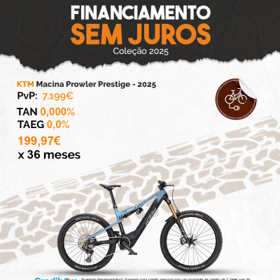 [Exemplo Representativo] Exemplo para crédito pessoal para um montante de crédito de 7199€ com 36 mensalidades de 199,97€ e TAN de 0,00%. Campanha válida para propostas aprovadas até 31 de Dezembro de 2025, sujeitas a aprovação pelo Banco Credibom, S.A entidade registada junto do BdP com o nº 916. A AJSM Unipessoal Lda. é intermediária de crédito a titulo acessório, com o registo nº 1657 no BdP e sem exclusividade ao Banco Credibom, S.A podendo apresentar ou propor, contratos de crédito a consumidores, prestar assistência a consumidores, mediante a realização de atos preparatórios ou de outros trabalhos de gestão pré-contratual relativamente a contratos de crédito que não tenham sido por si apresentados ou propostos. Apoio ao Cliente: 214 138 573 (Custo equivalente a uma chamada para a rede fixa nacional), 2ª a 6ª feira das 10h às 19h. AMBikes é uma marca que pertence ao intermediário de crédito AJSM Unipessoal Lda.