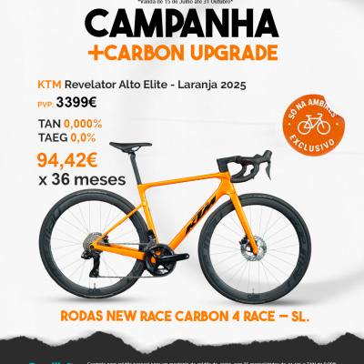 Durante o período da campanha, na aquisição da KTM Revelator Alto Laranja , está incluído um upgrade para rodas em carbono — modelo NEW RACE CARBON 4 RACE – SL.
