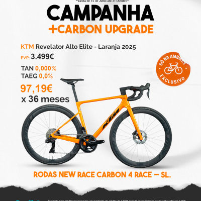 Durante o período da campanha, na aquisição da KTM Revelator Alto Laranja - 2025, está incluído um upgrade para rodas em carbono — modelo NEW RACE CARBON 4 RACE – SL.