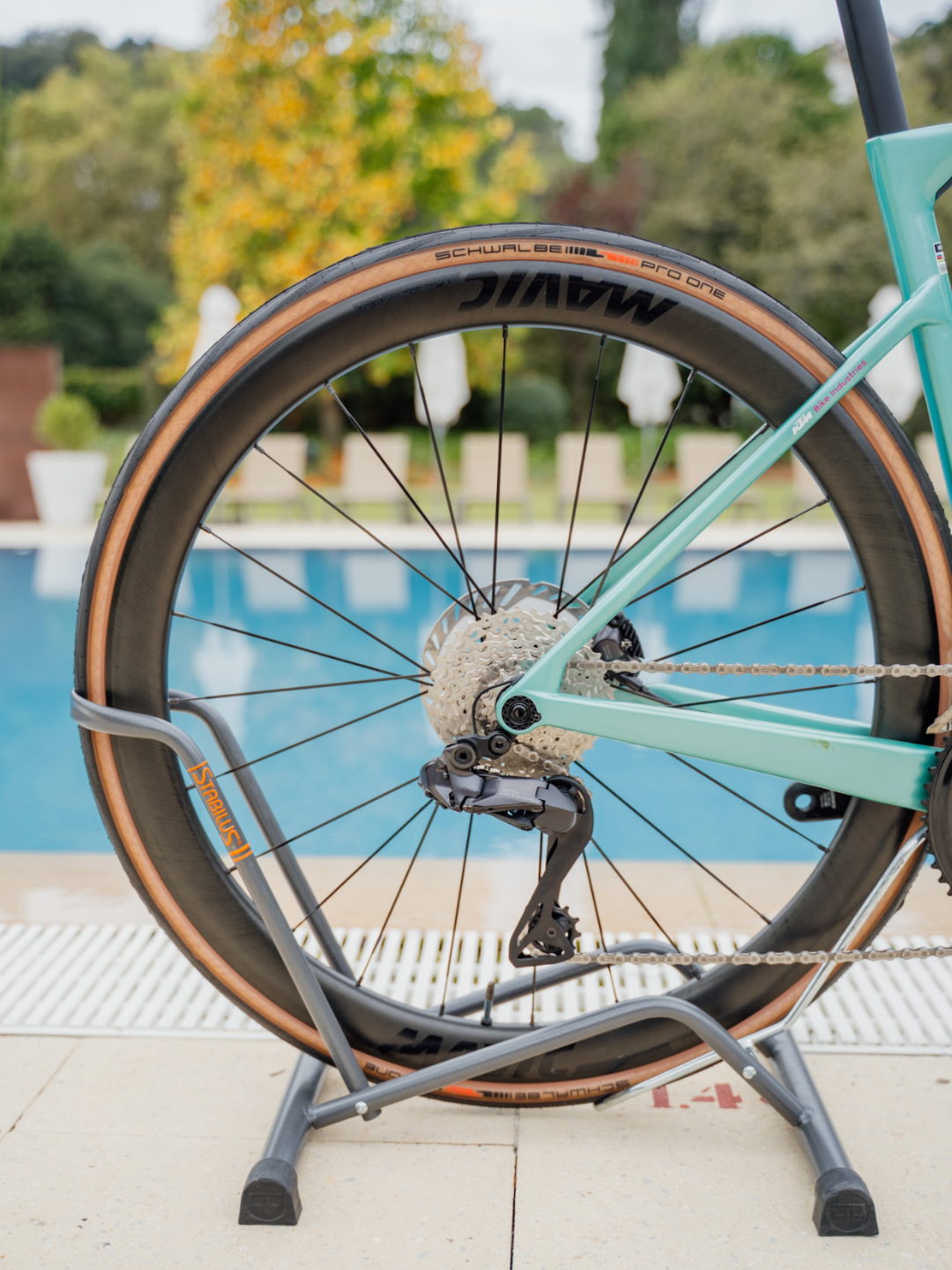 - Rear Tire: Schwalbe Pro One Evo Addix Race TLE 30-622