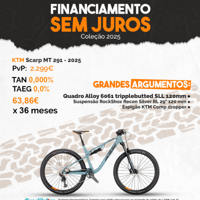 [Exemplo Representativo] Exemplo para crédito pessoal para um montante de crédito de 2299€ com 36 mensalidades de 63,86€ e TAN de 0,00%. Campanha válida para propostas aprovadas até 31 de Dezembro de 2025, sujeitas a aprovação pelo Banco Credibom, S.A entidade registada junto do BdP com o nº 916. A AJSM Unipessoal Lda. é intermediária de crédito a titulo acessório, com o registo nº 1657 no BdP e sem exclusividade ao Banco Credibom, S.A podendo apresentar ou propor, contratos de crédito a consumidores, prestar assistência a consumidores, mediante a realização de atos preparatórios ou de outros trabalhos de gestão pré-contratual relativamente a contratos de crédito que não tenham sido por si apresentados ou propostos. Apoio ao Cliente: 214 138 573 (Custo equivalente a uma chamada para a rede fixa nacional), 2ª a 6ª feira das 10h às 19h. AMBikes é uma marca que pertence ao intermediário de crédito AJSM Unipessoal Lda.