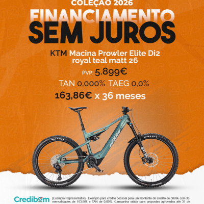 [Exemplo Representativo] Exemplo para crédito pessoal para um montante de crédito de 5.899,00 € com 36 mensalidades de 163,86 € e TAN de 0,00%. Campanha válida para propostas aprovadas até 31 de Dezembro de 2025, sujeitas a aprovação pelo Banco Credibom, S.A., entidade registada junto do BdP com o n.º 916. A AJSM Unipessoal Lda. é intermediária de crédito a título acessório, com o registo n.º 1657 no BdP e sem exclusividade ao Banco Credibom, S.A., podendo apresentar ou propor contratos de crédito a consumidores, prestar assistência a consumidores mediante a realização de atos preparatórios ou outros trabalhos de gestão pré-contratual relativamente a contratos de crédito que não tenham sido por si apresentados ou propostos. Apoio ao Cliente: 214 138 573 (chamada para a rede fixa nacional), 2ª a 6ª feira das 10h às 19h. AMBikes é uma marca que pertence ao intermediário de crédito AJSM Unipessoal Lda.