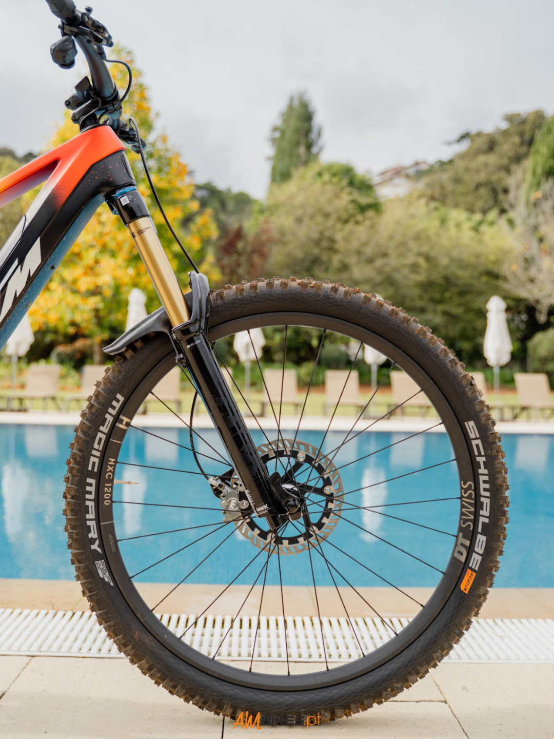 - Front Tire: Schwalbe Magic Mary Evo SuperTrail TLE 65–622